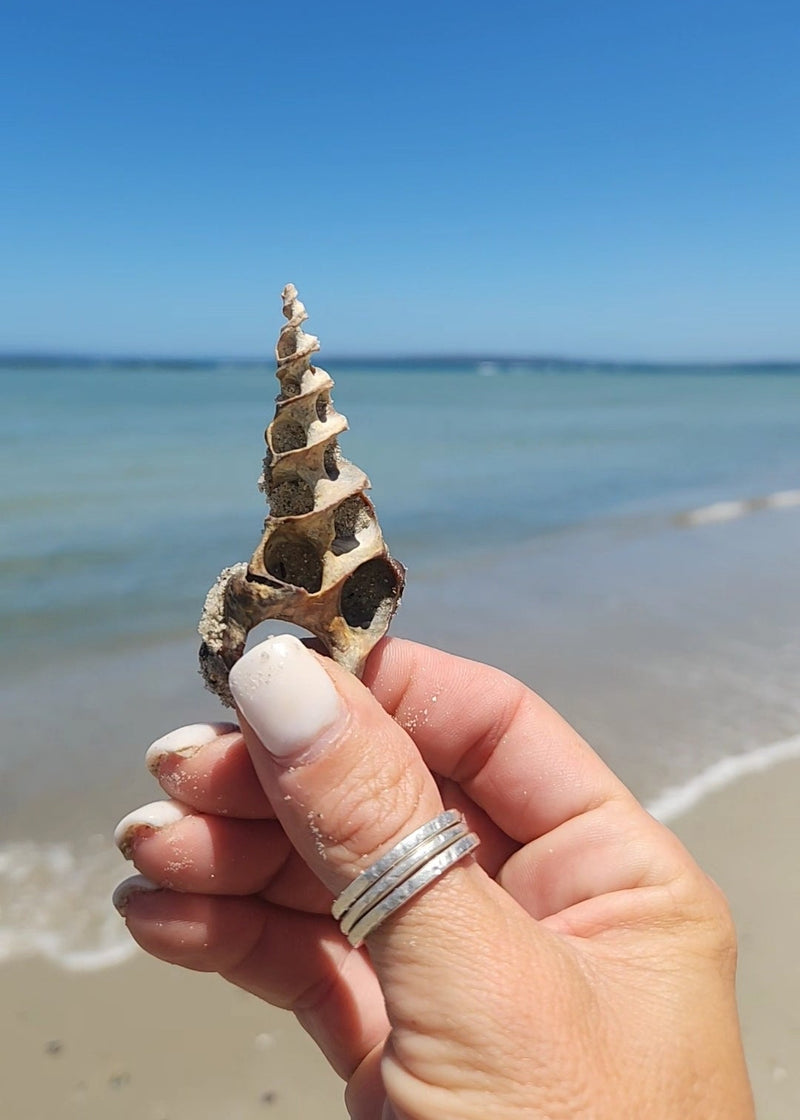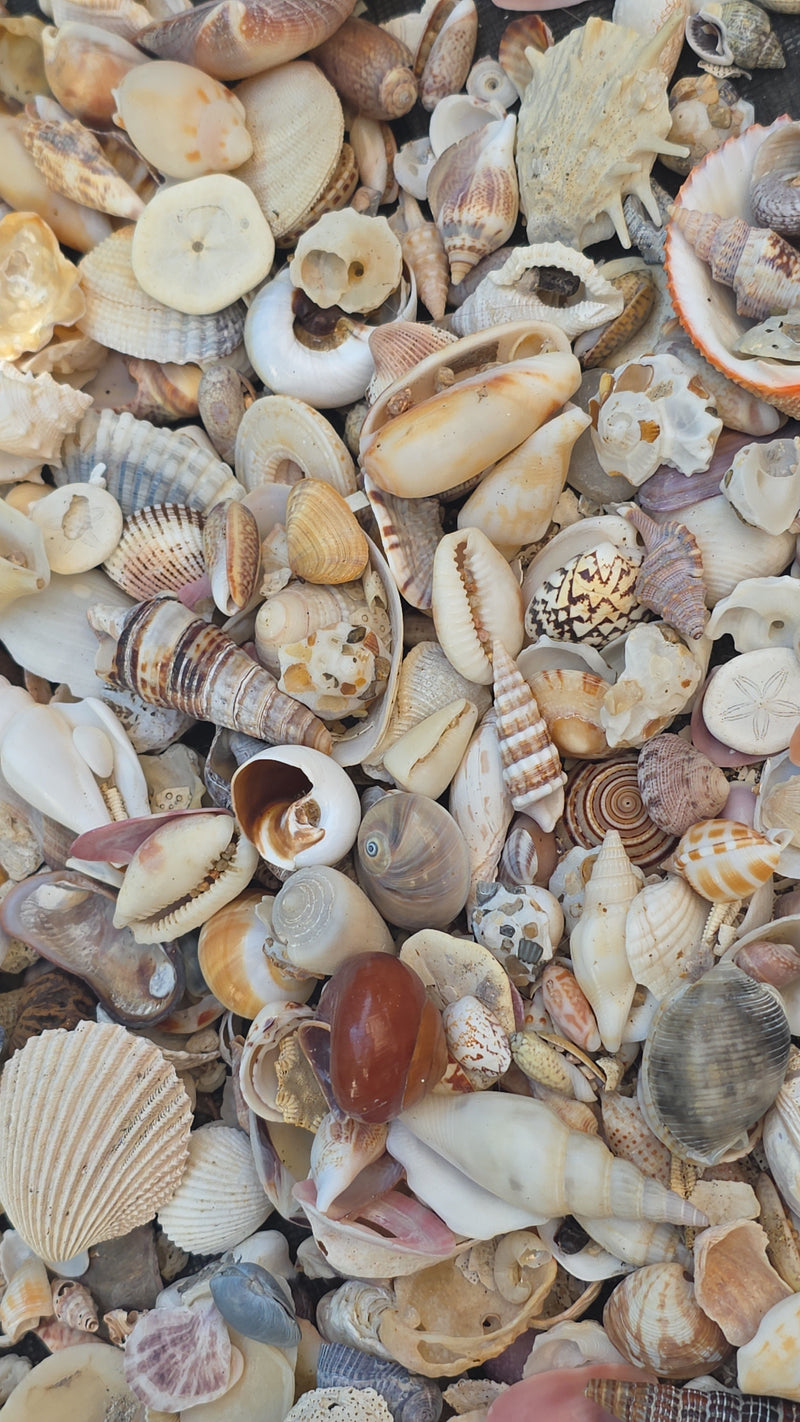 Every piece begins with the ocean’s quiet treasures. Each shell is a fragment of a journey, shaped by the Ocean and carrying the imprint of tides, currents, and time. Ethically sourced from the coastline, their textures and patterns are naturally formed, often worn and weathered, making every shell entirely unique. Hand-selected for their individual beauty, a thoughtful blend of whole and broken shells are used, creating a layered narrative of movement and transformation. Each element is arranged to honour its past while becoming part of something entirely new.